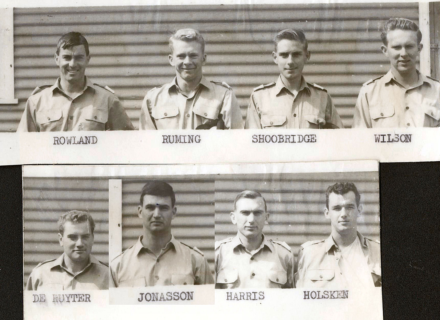 Standing L-R: Richard N Kelloway, TC Wilson, Hans H Holsken, Peter W Davies, Brian D Harris, Neil F Jonasson. Seated L-R: WR Shoobridge, Ray H Ruming, P Hamon, GE Rowland, FJ De Ruyter.