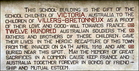 We learnt that after the war the township of Villers-Bretonneux was adopted by the city of Melbourne and the Victorian Government. The main reason for this was that one of the Brigades associated with the fighting in Villers-Bretonneux consisted of Victorian battalions. Melbourne and Victoria paid for the re-building of the school and also contributed to helping re-build the town.