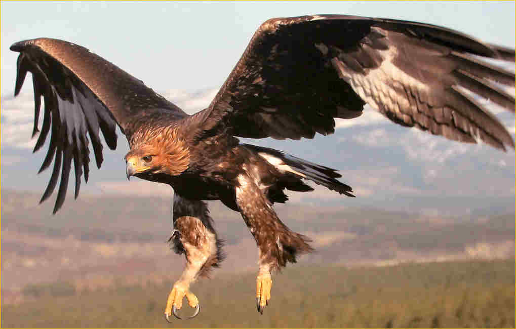 “I went out to plant corn for a bit to finish a field before tomorrow morning and witnessed The Great Battle. A golden eagle - big, with about a six foot wingspan - flew right in front of the tractor. It was being chased by three crows that were continually dive bombing it and pecking at it. The crows do this because the eagles rob their nests when they find them.