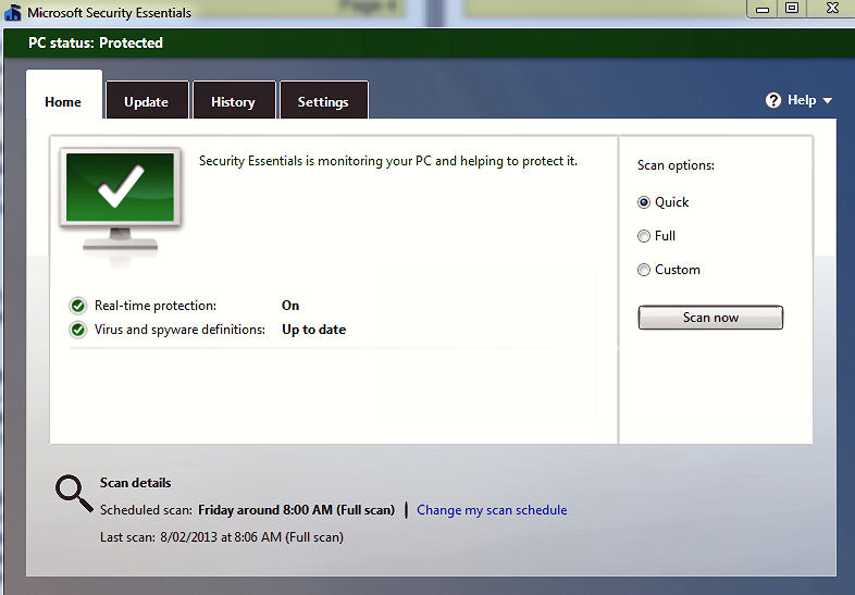 Antivirus: As we’ve discussed earlier, your anti-virus software is very important if you use the internet – but it’s no good if it is not regularly updated, you should check it every day. Verify that your system is free of worms, viruses, Trojans, and other malware by running a full scan with a standalone security tool such as Trend Micro's HouseCall, ESET's Online Scanner or Microsoft Security Essentials.