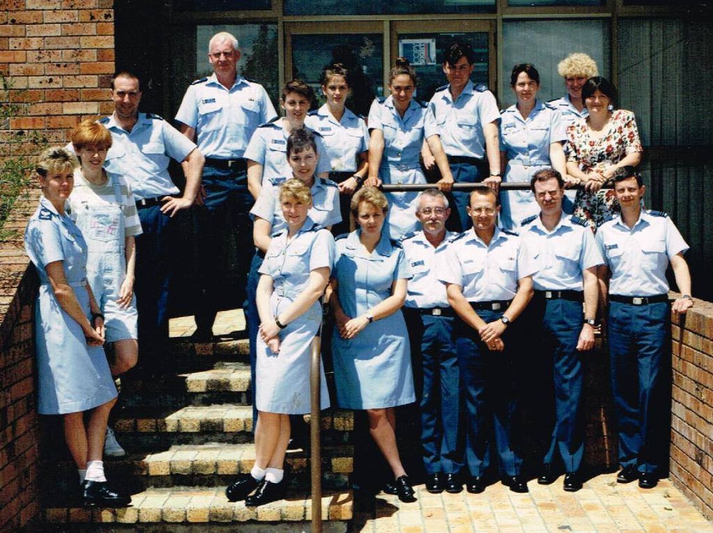 Back L-R: Sgt G Hill, Lacw J Hose, Acw S Wallace, Lac G Fergusson, Cpl C Logan, Lacw M Presbury 3rd Row L-R: Cpl W Butler, Lacw K Eats, Cpl T Caines 2nd Row L-R: Cpl R Bowles (Woolnough), Lacw G Aldridge Front L-R: Sgt R Robertson, Cpl K Mair, Acw D Christensen, Cpl N Speed, Fsgt D Tape, SqnLdr C Edwards Fltlt S Watts,
