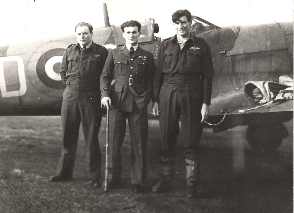 L-R: SqnLdr Keith “Bluey” Truscott, Paddy Finucane (RAF), SqnLdr Raymond Thorold-Smith.