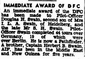 When he was flying the Dakota, Doug Swain (awarded the DFC July 1945) would also drop a single rolled up Sydney Morning Herald to some friendly farmers who lived on country properties among the mountains near Tamworth. He would circle the property house then drop half flap, reduce the airspeed to 95 knots and come in low over the farmer’s house. The copilot would slide open the starboard window and on the order from Doug, throw the paper down inside the arc of the starboard propeller. In return, boxes of fruit would be waiting each week at Tamworth aerodrome as a gesture of thanks from the farmer. Back at Camden, Doug would give the apples and oranges to the ground staff. It was a happy arrangement.