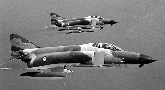 I served my time on F-4Es in No. 1 Squadron at Amberley. Our main role was Air-to-Ground so we spent a lot of time on the Evans Head bombing range using all the different bombing methods and techniques the aircraft equipment offered. The F-4E was a two-crew aircraft so the ‘Guy In the Back’ (GIB) controlled all of the radar and navigation equipment used when operating on the weapons range or in the air intercept role. The F-4Es also did quite a few maritime strike missions against RAN targets and I recall the low flying training sorties we did over the sea to gradually step our height down to 50 feet above the water (I think it was 50 feet). The CO, Wing Commander Mike Ridgeway was the leader of the four-ship formation. The normal minimum height over the sea was 150 feet. On the subsequent strike against the RAN I can still recall seeing under the lip of the aircraft carrier deck as we whizzed past.