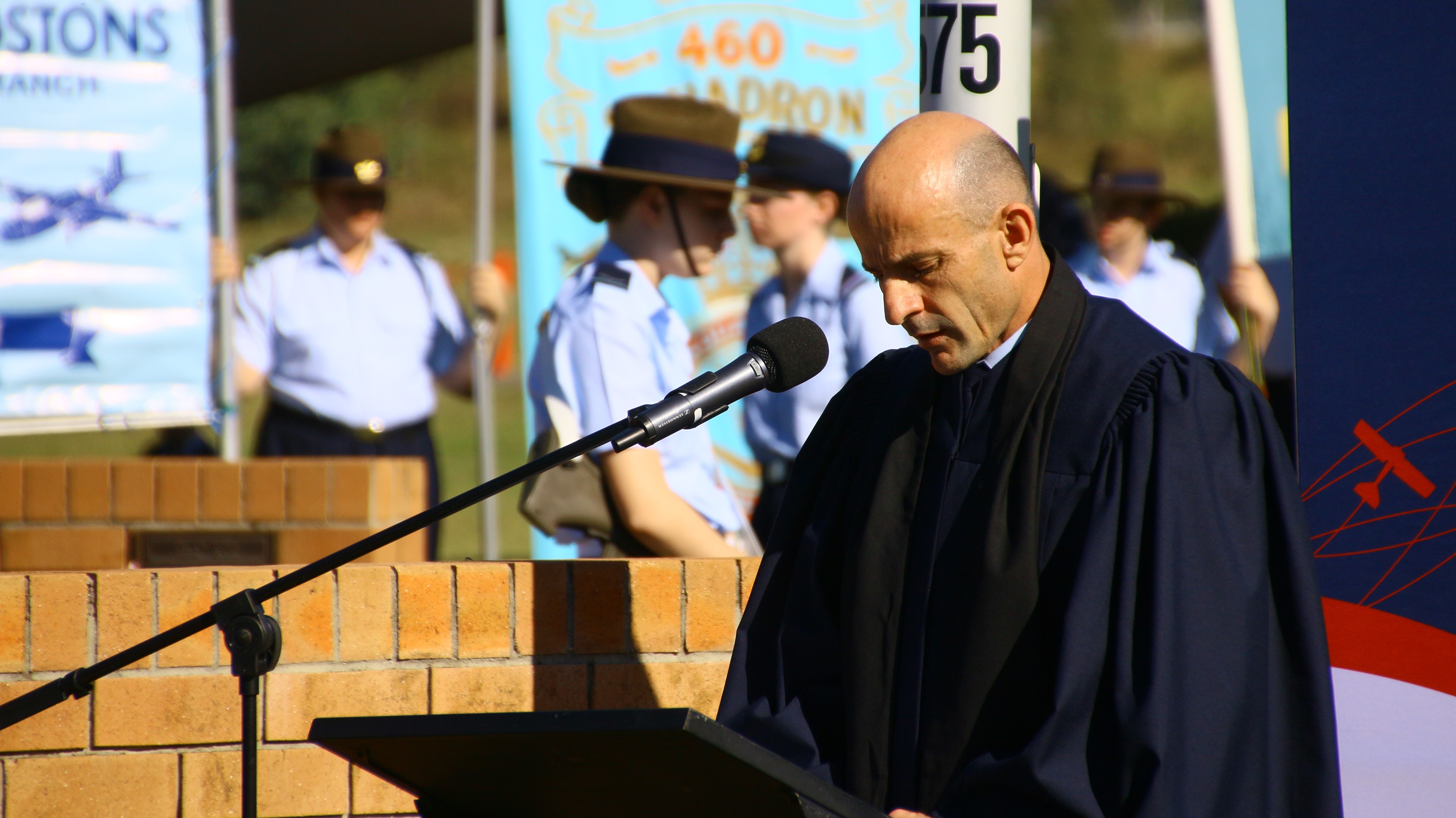 FltLt Greg Hinks, the OC of 208 Sqn of the Air Force Cadets was the Master of Ceremonies for the occasion and the ceremony got underway at about 10.00am under a lovely clear sky.