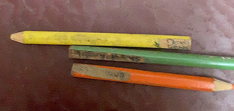 What are just throw away items today, when we were kids pencils were valuable. Before we went off to school, mum would shave off a bit of the pencil at the top end and write our names there in ink so we always knew which were ours. |